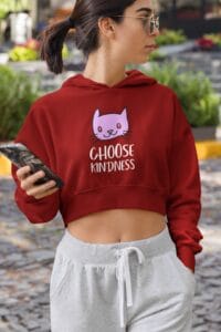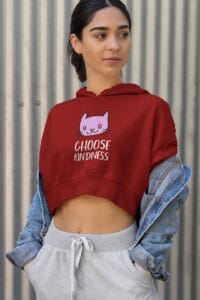 Women’s Cropped Hoodie – Super Combed Maroon ‘Choose Kindness’ Crop Hoodie