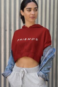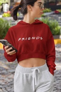 Women’s Black Cropped Hoodie with Friends Title Print – Trendy Cotton Hoodie