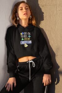 Women’s Black Cropped Hoodie with “It’s OK To Feel Every Emotion” Text Print – Trendy Cotton Hoodie