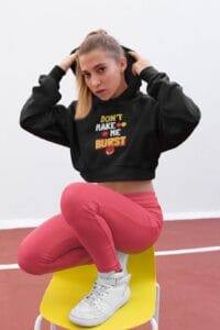 Women’s Black Cropped Hoodie with “Don’t Make Me Burst” Text Print – Trendy Cotton Hoodie