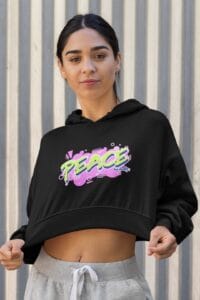 Women’s Black Cropped Hoodie – Peace Trendy Cotton Hoodie