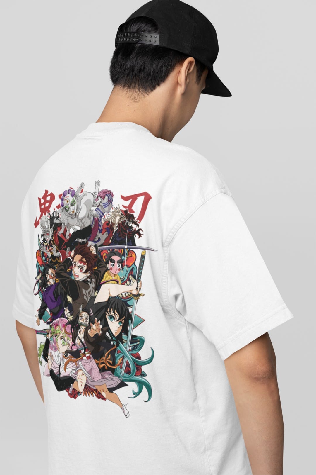 Demon Slayer T-Shirt – White Oversized Cotton Tee for Anime Fans