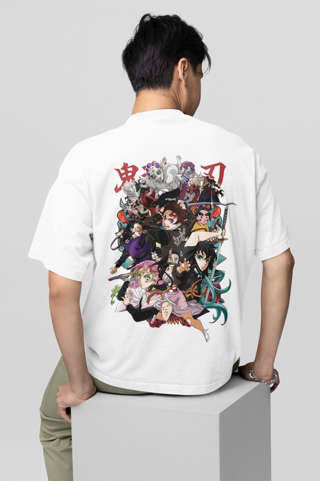 Celebrate your love for Demon Slayer with this white oversized T-shirt, featuring stunning prints of your favorite anime stars on the back and the classic Demon Slayer logo on the front. This Demon Slayer T-shirt blends fandom and comfort seamlessly, making it a must-have for anime lovers. Crafted from premium 240 GSM 100% super combed cotton, it offers a soft, breathable texture, ensuring comfort during summer and everyday wear.