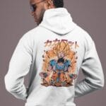 This sweatshirt features an iconic Goku Super Saiyan design on the back and a nostalgic Kid Goku design on the front, printed with highly durable DTG printing technology for vivid colors and fine detailing. The crisp white color perfectly complements the striking artwork, making it a must-have for Dragon Ball fans who love a clean and stylish look.